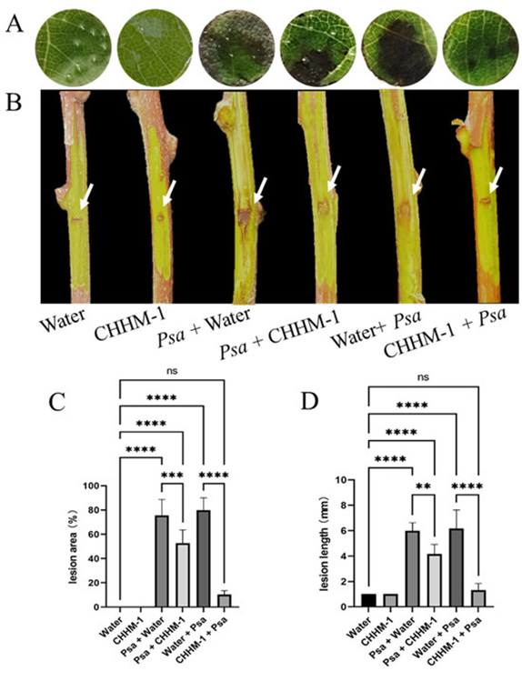 研究团队通过实验发现,韩国假单胞菌能够有效抑制溃疡病病原菌的生长。在离体枝条试验中,该菌株在预防处理中可显著降低病害的发生。进一步的研究发现菌株表现出多种植物生长促进特性,如固氮、溶磷、产生铁载体和合成生长素。该研究为开发新型生物农药提供了理想的候选菌株,不仅有望有效防控软枣猕猴桃溃疡病、减少化学农药使用,还将助力产业向绿色可持续方向发展。